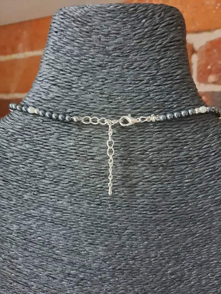 COLLIER FEMME en hématite et perle nacrée, élégant et raffiné, pièce unique artisanale